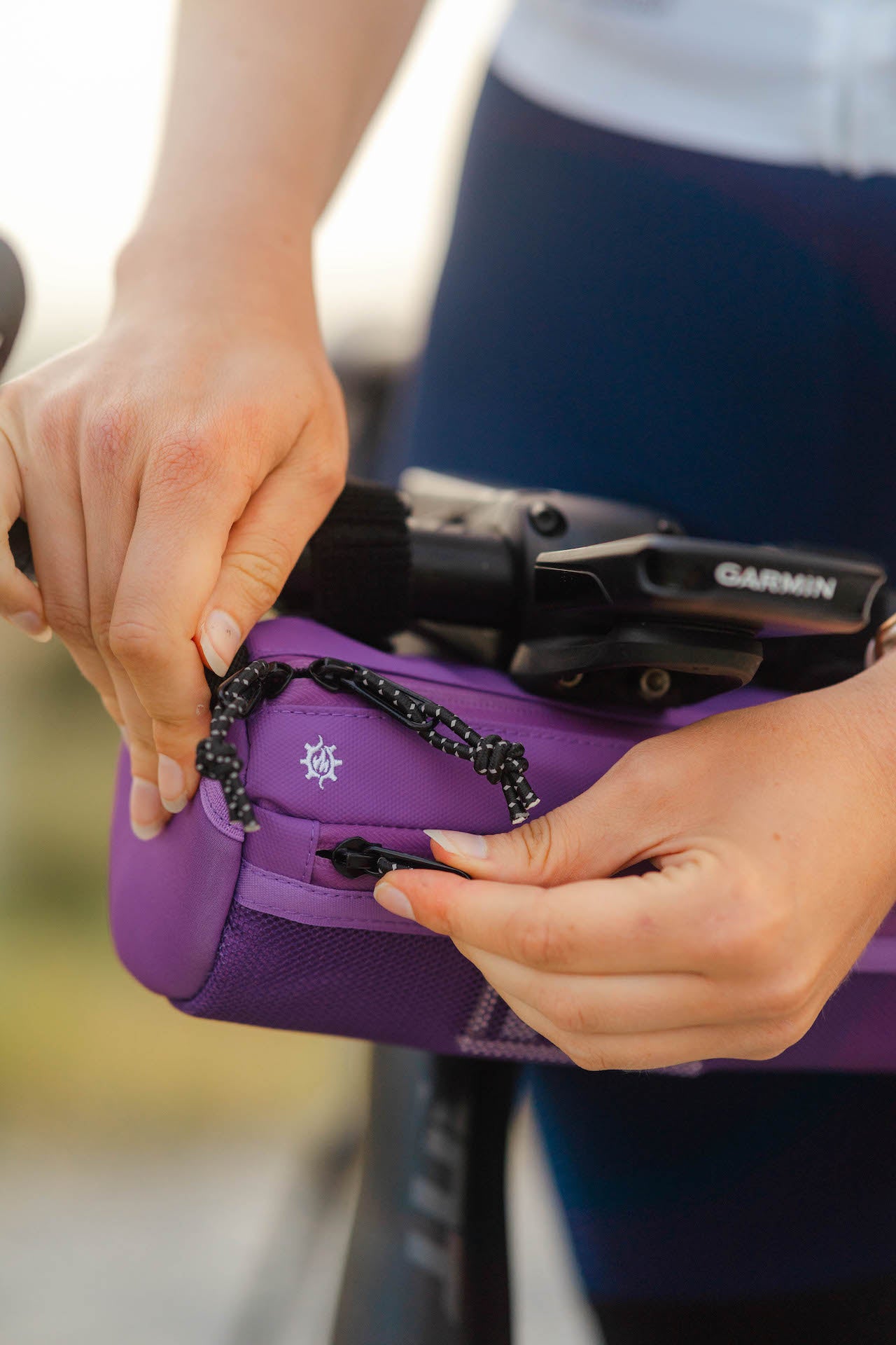 ADJUSTABLE STRAPS. Our handlebar bag comes with 2 types of straps for you to choose from: the clip-on or velcro straps.